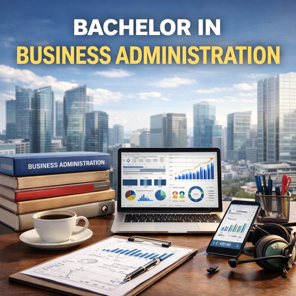 Bachelor in Business Administration is a comprehensive program designed to develop strong business leaders. It covers core areas like management, finance, marketing, and strategic planning, equipping students with the skills needed to manage organizations effectively.